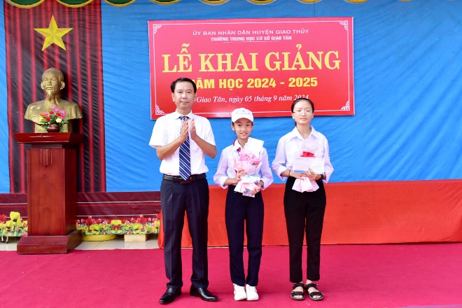 Mở đầu buổi lễ, ông Đinh Quyết Chiến – Phó chủ tịch UBND xã Giao Tân lên đọc thư của Bí thư, Chủ tịch nước: Tô Lâm gửi ngành giáo dục nhân dịp khai giảng năm học 2024-2025.